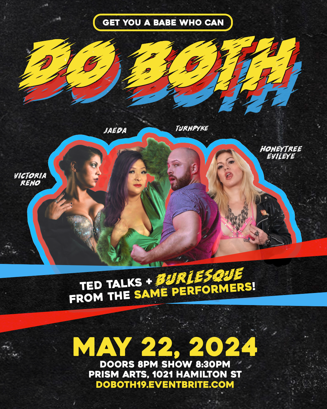 Catch the next LIVE episode of DTF: Darryl and Timaree Fun Hour May 17th with special guests Chanel Ali and Jo Li, now at our NEW TIME of 9 pm at Comedy Sportz! Get You a Babe Who Can Do Both, the show that combines TEDx talks and burlesque is at Prism Arts May 22nd. See all my upcoming events here!